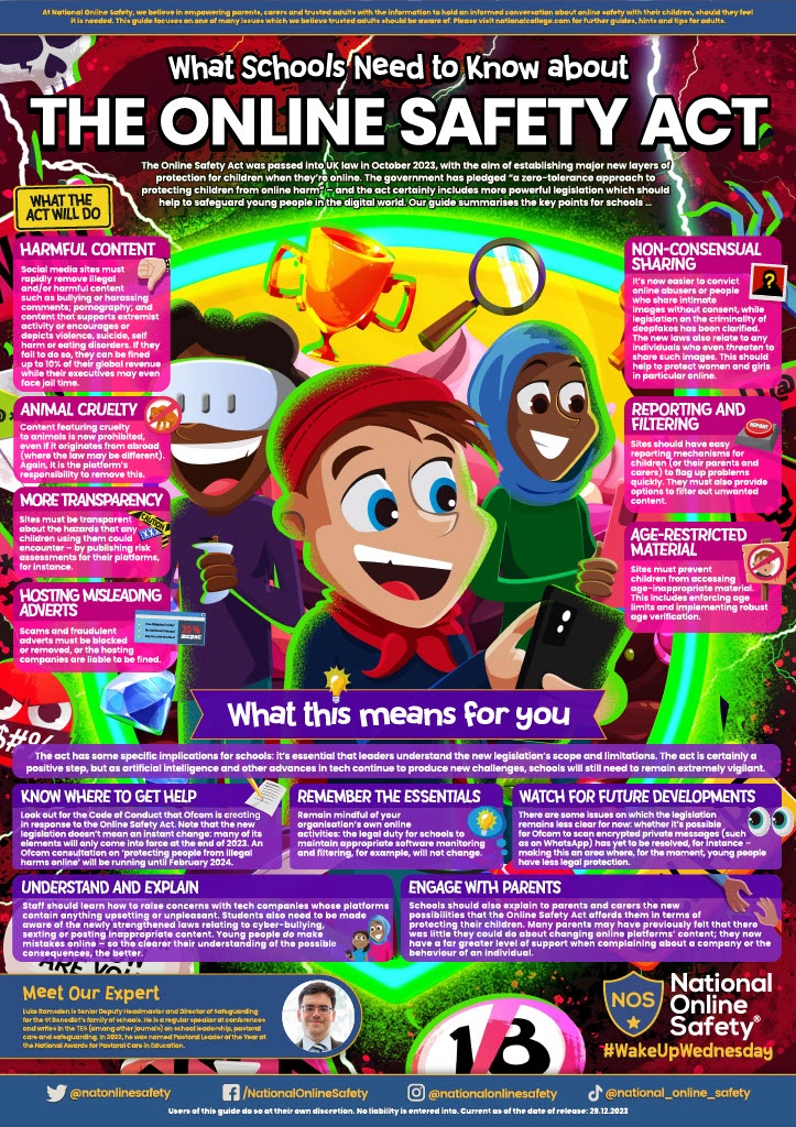 Please see information below which helps to support you and your child stay safe online. Below are several E-posters from National Online Safety where you will also find a range of parental guides .